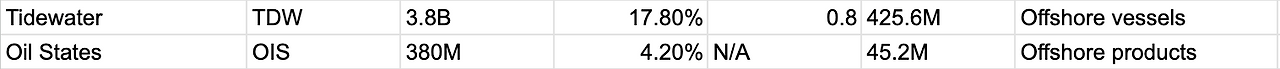 해상 선박, 제품 - Tidewater (TDW), Oil States (OIS)